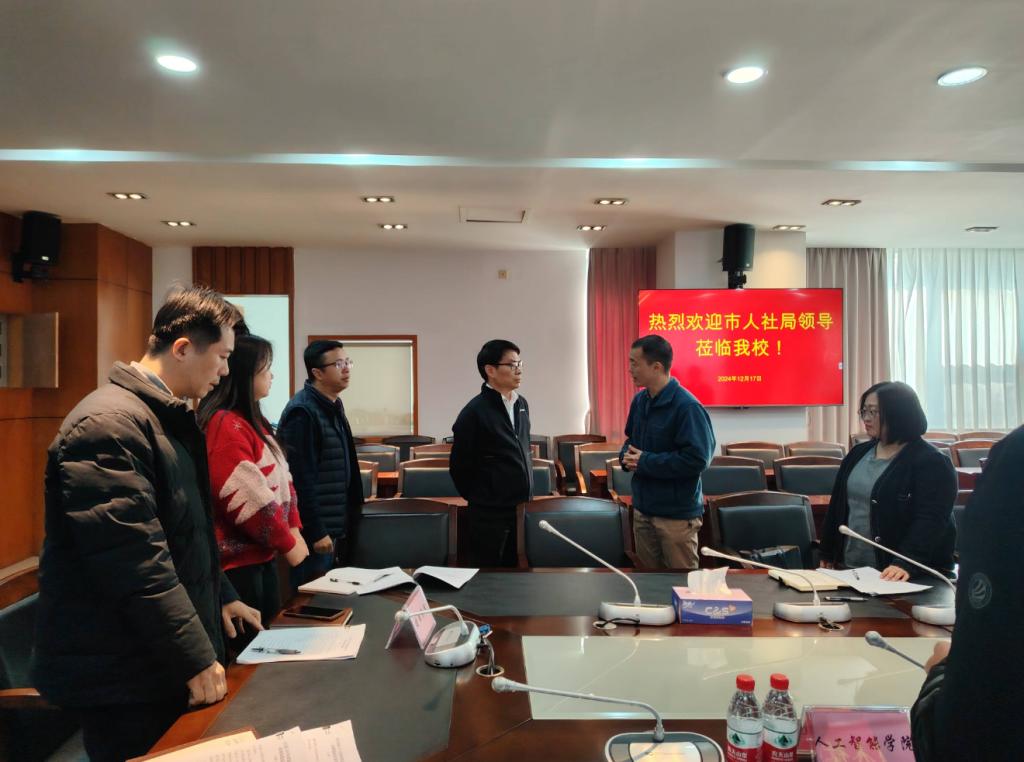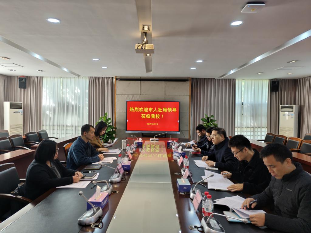 12月17日上午,东莞市人力资源和社会保障局四级调研员赵欣一行3人到我校交流。我校党委副书记、纪委书记蔡东宝以及人事处、继续教育学院、智能制造学院、电子信息学院、建筑学院、卫生健康学院等二级学院相关负责人参加交流。