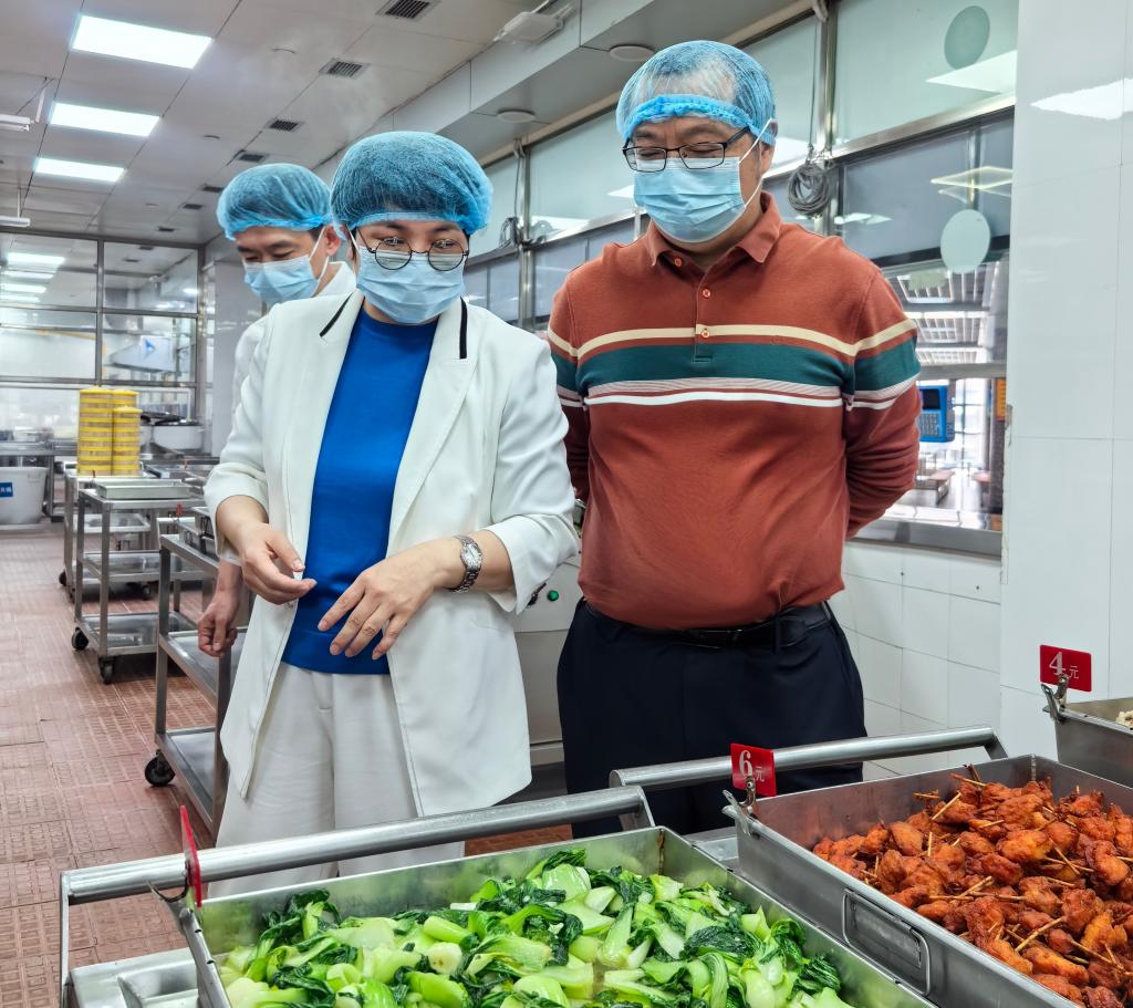 司琪书记就食堂大宗食材进货周期合理性、复用餐饮具清洗消毒流程等环节进行细致询问,了解掌握食品安全日常监管体系运行情况。她强调,必须严格落实食品安全管理责任,定期开展风险隐患自查自纠,严格执行“日管控、周排查、月调度”管理制度,强化风险防范化解,全力筑牢校园食品安全防线。