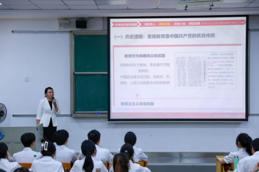 我校马克思主义学院黄倩怡老师以“加快建设教育强国,职教何为”为主题进行教学展示,用深入的理论分析和鲜活的职教案例,生动诠释了教育强国战略下的职教担当,激发了学生的爱国情怀与使命感,受到了与会老师的一致好评。