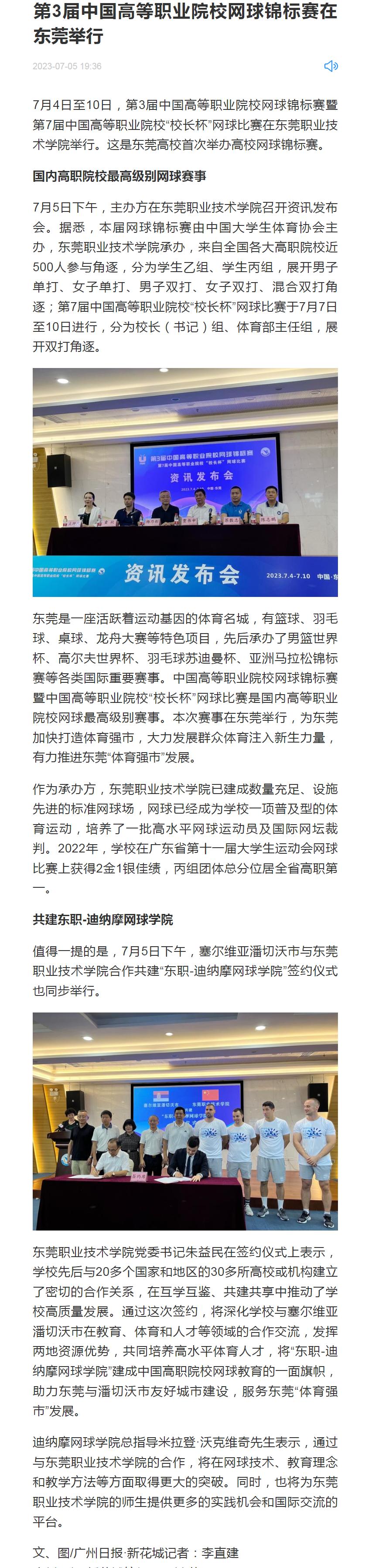 【广州日报】第3届中国高等职业院校网球锦标赛在东莞举行