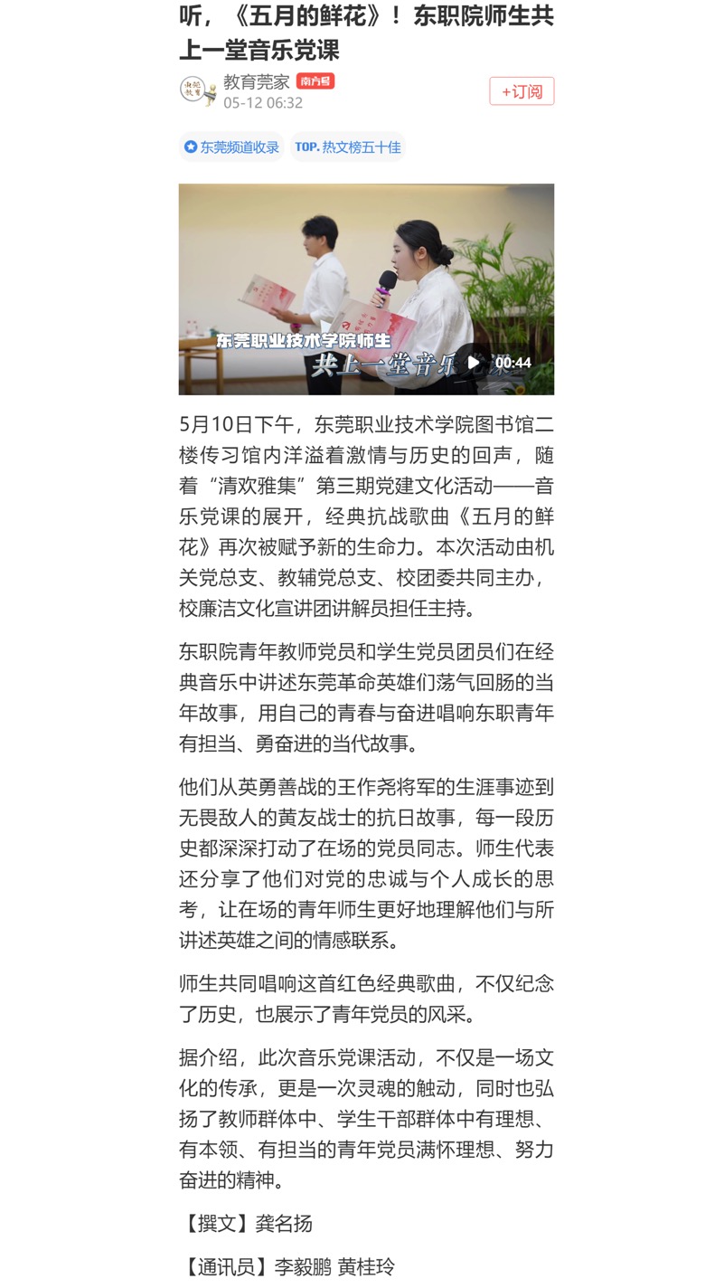 【南方+】听,《五月的鲜花》!东职院师生共上一堂音乐党课